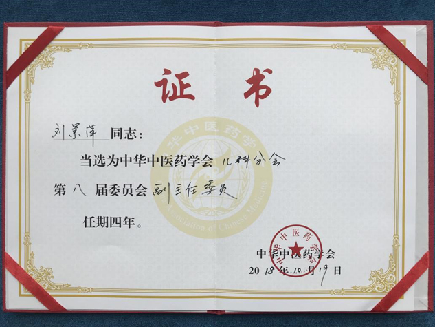 ¡øÖлªÖÐҽҩѧ»á¶ù¿Æ·Ö»áÖ÷ÈÎίԱÐÜÀÚ½ÌÊÚΪÁõ¾°Æ¼¶Ê³¤½ÒÏþÖ¤Êé