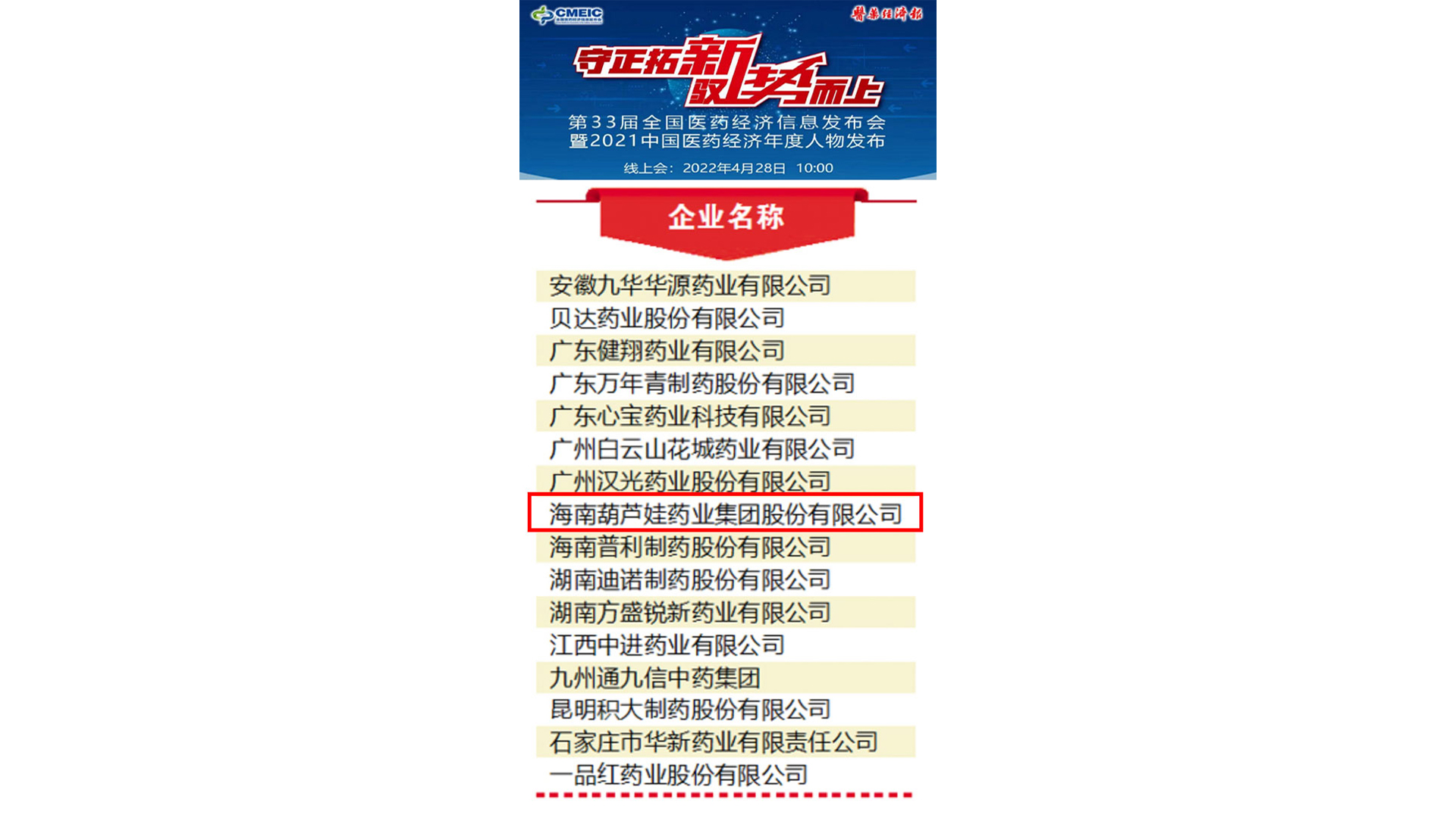 2021Ä꣬¹ú¼Ò¡°Ê®ËÄÎ塱ÍýÏ뿪¾Ö,Ò½Ò©¹¤ÒµÂõÏò¸ßÖÊÁ¿Éú³¤Ð½׶Ρ£ÔÚ¹ú¼Ò¡°Á¢ÒìÇý¶¯Éú³¤¡±Õ½ÂÔÏ£¬Ò½Ò©Á¢ÒìÒªËØÒ»Ö±¼¯¾Û£¬Á¢ÒìÄÜÁ¦Ò»Ö±ÌáÉý¡£¡¶Ò½Ò©¾¼Ã±¨¡·ÒÔ¡°Í·²¿ÊµÁ¦¡±ÎªÒªº¦´Ê£¬ÒÔ¡°¹ú¼ÊÈÏͬ¡¢ÔËÐÐÎȽ¡Ö¸Êý¡¢Òµ¼¨Ö¸±ê¡¢Éç»áÔðÈÎÖ¸Êý¡±µÈά¶È£¬ÆÀÑ¡³öÃæ²¿ÊµÁ¦¡¤ÖйúÒ½Ò©¸ßÖÊÁ¿Éú³¤Ð§¹ûÆóÒµ£¨2021£©£¬½ø¶ø±íÑï¾Û½¹¼áÊØ³õÐÄ¡¢¿ªÍØÇ°ÐеÄÐÐÒµÖ÷½Ç¡£